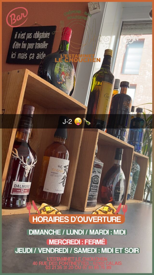 APPELER +33321353120Laissez vous séduire par l'ambiance chaleureuse et l'hospitalité de L'ESTAMINET LE CHOUCHEN . Nous vous proposons une sélection de galettes et crêpes délicieuses, ainsi que des plats traditionnels. Nous sommes en mesure de répondre à une multitude de préférences alimentaires. De la bière rafraîchissante, du vin et du café sont également disponibles pour votre plaisir. Une petite faim ? Rendez-nous visite et savourez un repas savoureux dans un espace de détente.